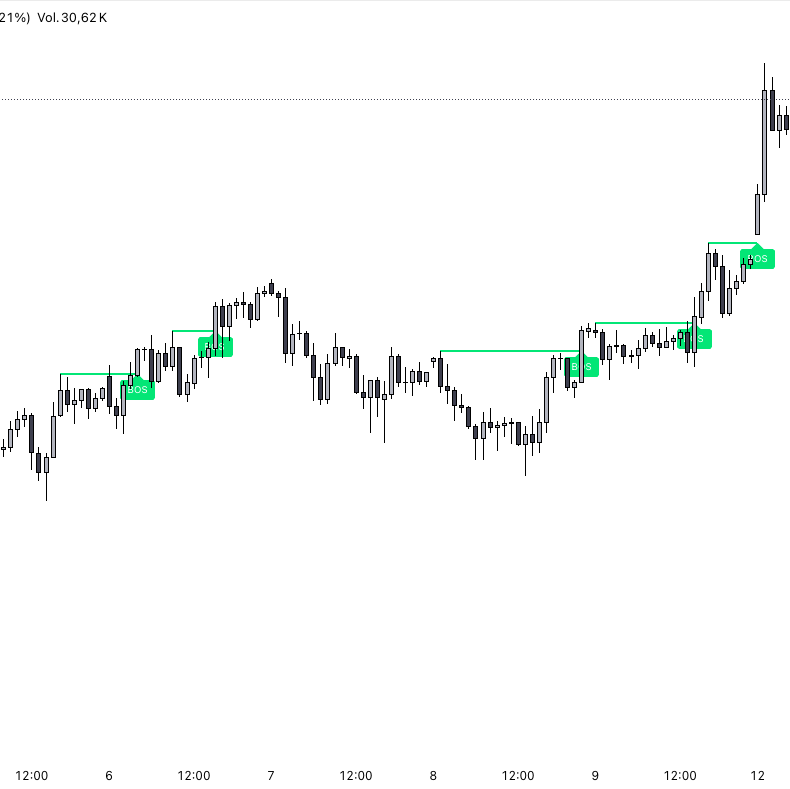 Identify structural changes (BOS and CHoCH) using confirmed swings for an objective reading of price movement.